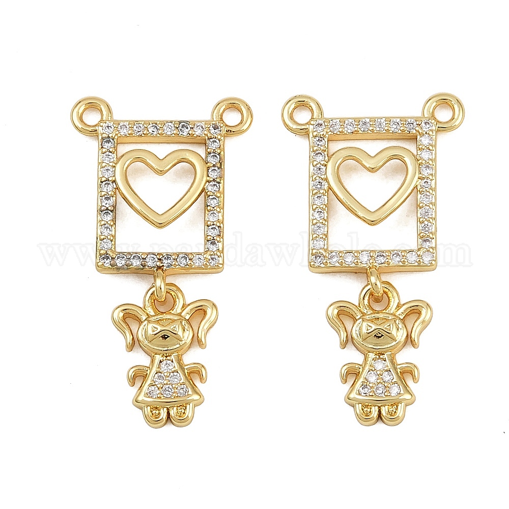 • Настоящее золото 16K Латунные микро проложить кубического циркония подвески, сердце с девушкой, реальный 16 k позолоченный, 26x14x2 мм, отверстие : 1.4 мм