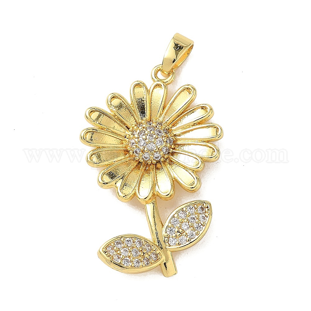 • Настоящее золото 18K Латунные микро проложить кубического циркония подвески, цветок, реальный 18 k позолоченный, 28.5x18x4 мм, отверстие : 4x3 мм