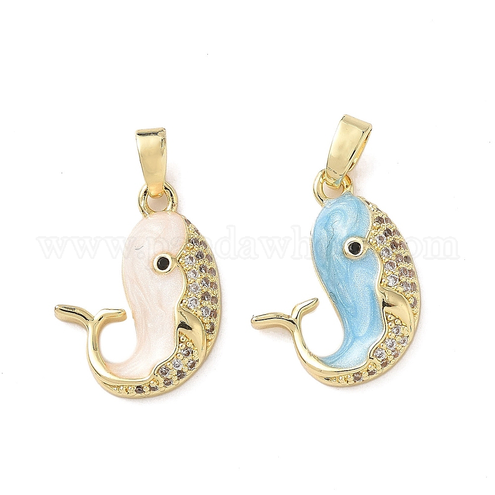 Латунные микро проложить кубического циркония подвески, кит, Эмаль стиле, реальный 18 k позолоченный