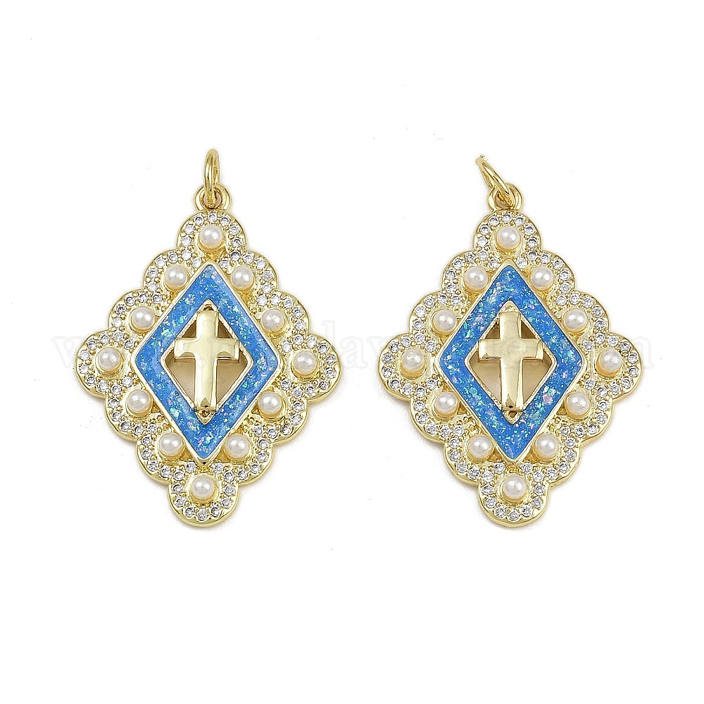 Латунные микропроволочные кубические циркониевые подвески из эмали, ромб с крестообразными подвесками, с соединительным кольцом и жемчужиной из АБС-пластика