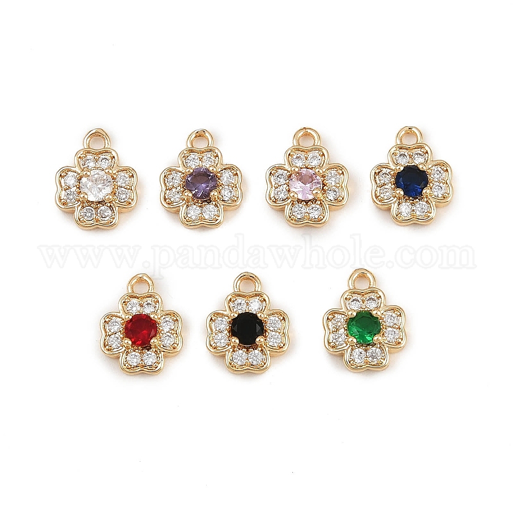 Латунные микро проложить кубического циркония подвески, клевер амулеты, реальный 18 k позолоченный