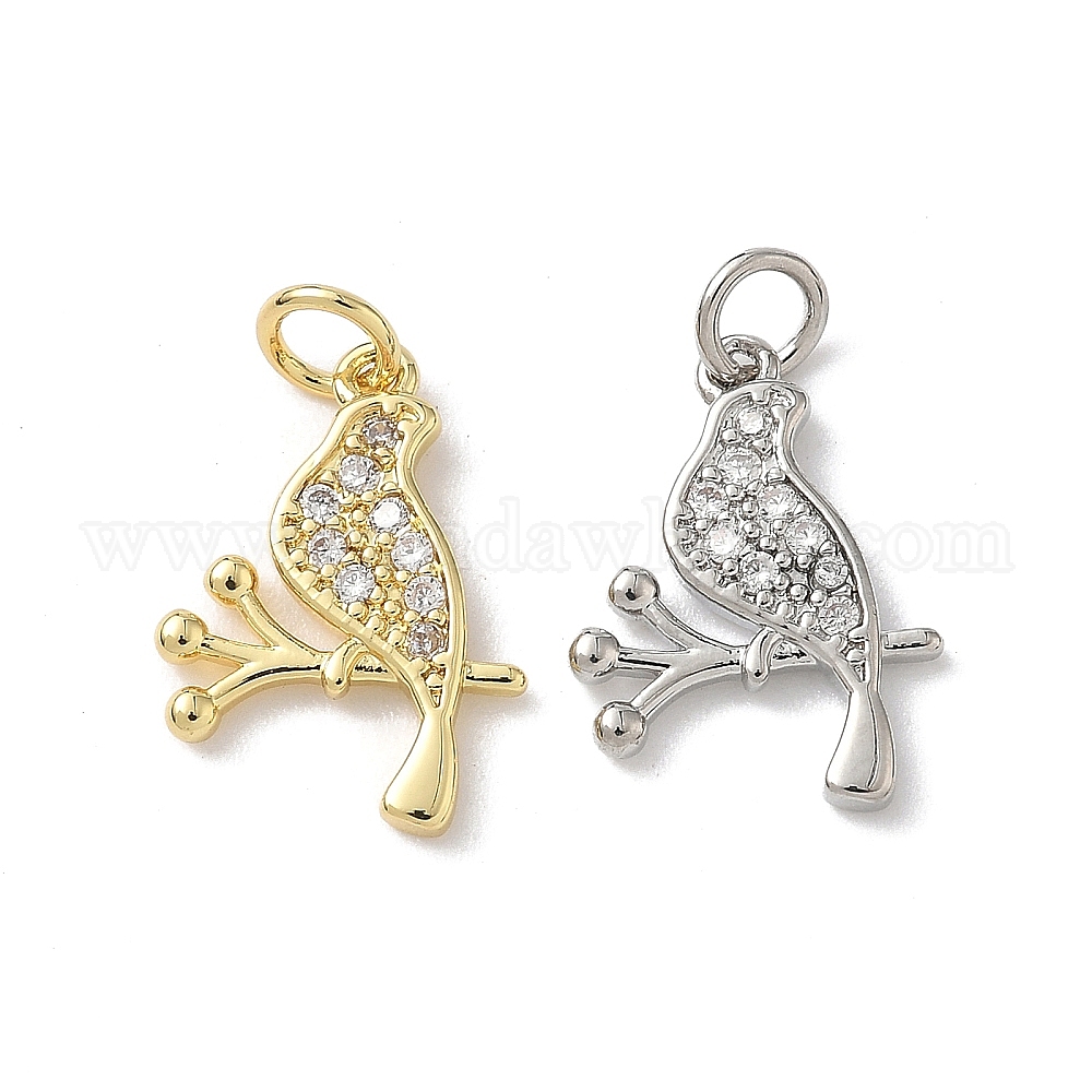 Латунные микропаве прозрачные подвески с фианитом, подвески-птицы с соединительными кольцами, стойки покрытие, без кадмия и без свинца, долговечный (03734C)