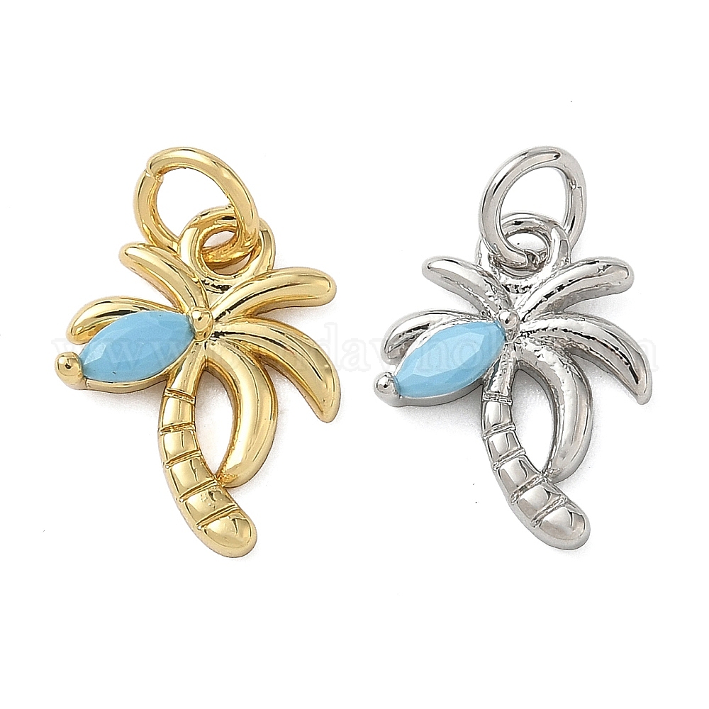 Подвески в виде кокосовой пальмы с латунным паве из светло-голубых кубических цирконий, с прыжковых колец, стойки покрытие, долговечный, без свинца и без кадмия (0373H8)