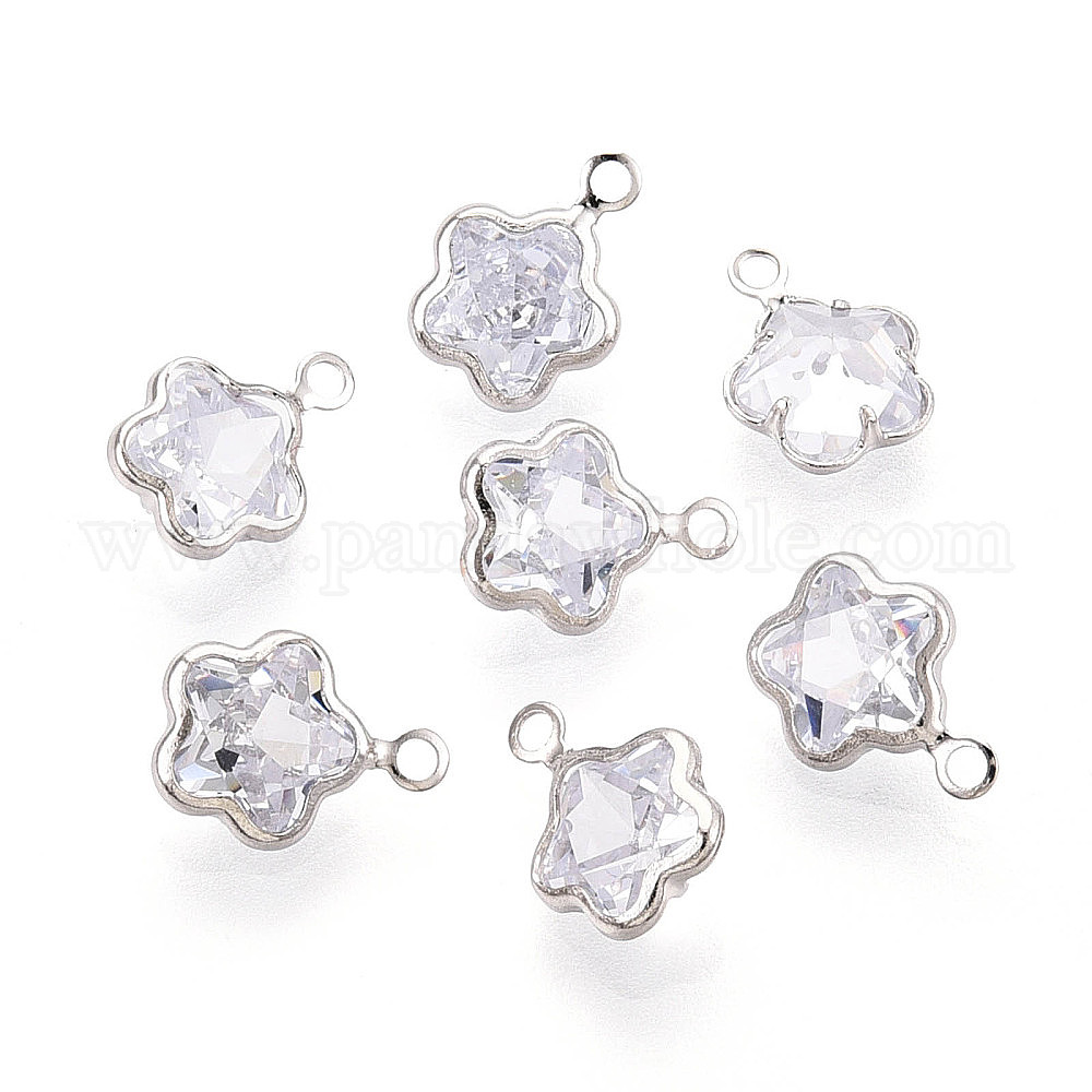 • Платина Подвески из латуни с прозрачным фианитом, , платина, 9x7x3 мм, отверстие : 1.2 мм
