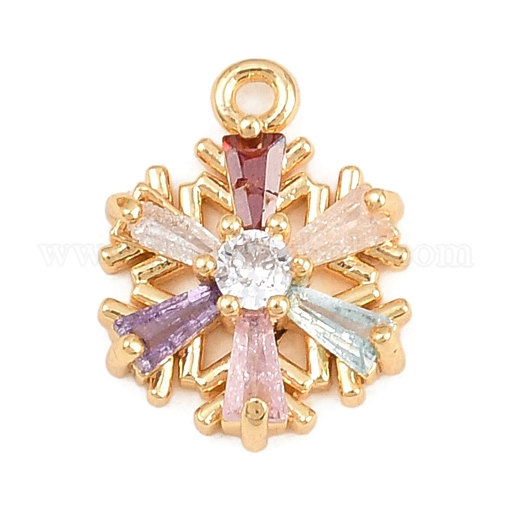 1шт. латунные подвески с кубическим цирконием, Рождественские снежинки, красочный
