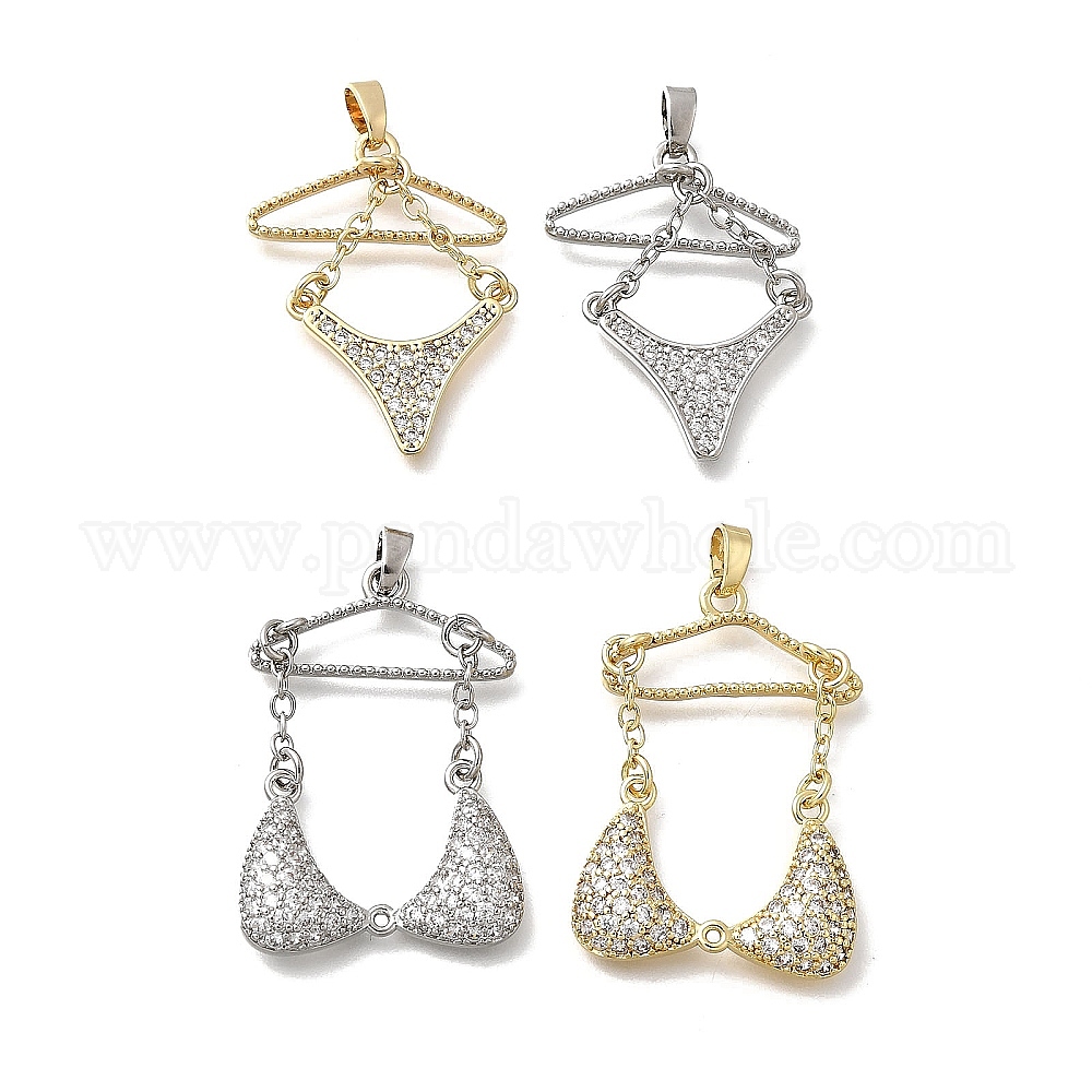 • Платина Латунные микро проложить кубического циркония прелести, бикини, платина, 29x21.5x4 мм, отверстие : 5x2 мм