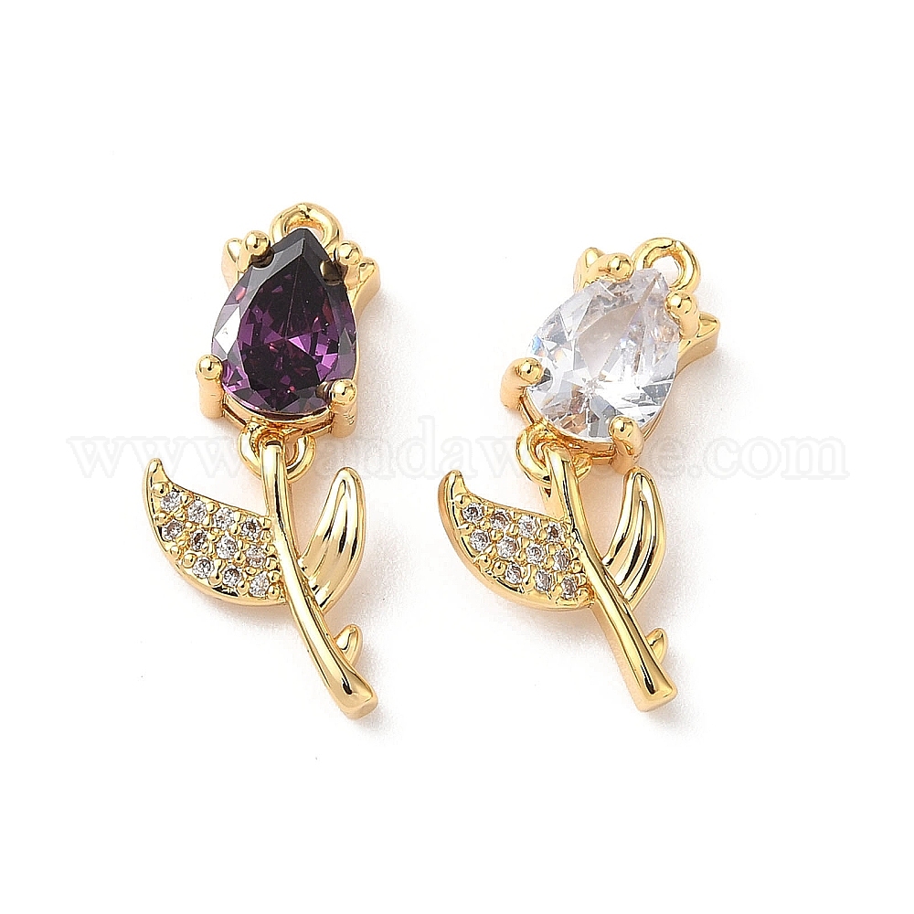Латунные микро проложить кубического циркония подвески, цветочный шарм, реальный 18 k позолоченный, без никеля