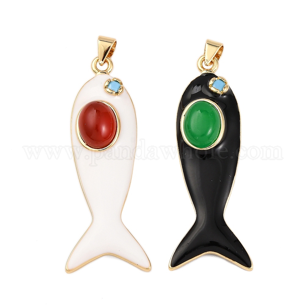 Рыба из латуни микро проложить Цирконом подвески, с эмалью и натуральными драгоценными камнями, стойки покрытие, долговечный, без свинца и без кадмия