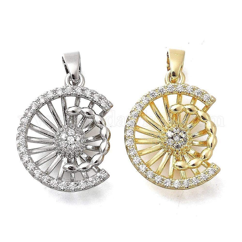 • Настоящее золото 18K Латунные микро проложить кубического циркония подвески, плоские круглые прелести, реальный 18 k позолоченный, 18x14x6 мм, отверстие : 5x2.5 мм