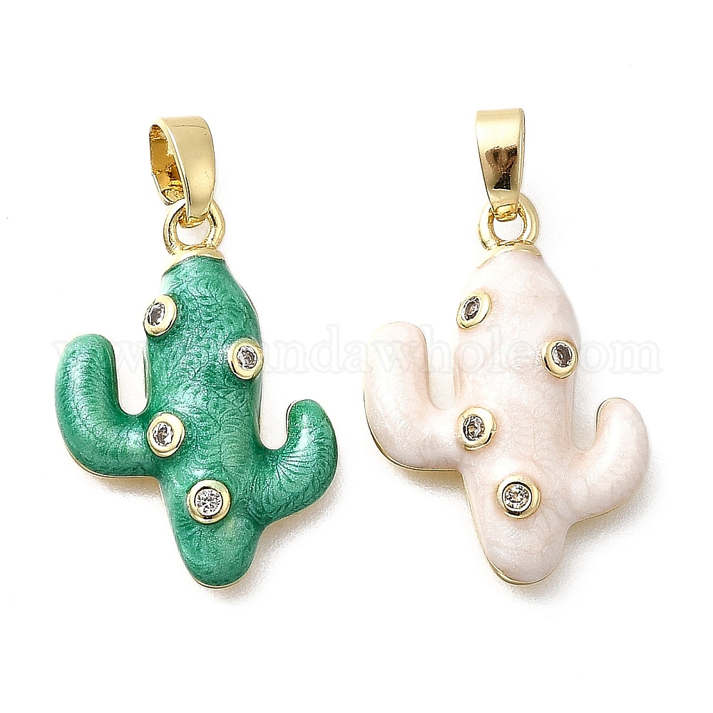 Латунные микро проложить кубического циркония подвески, Эмаль стиле, реальный 18 k позолоченный, кактус прелести