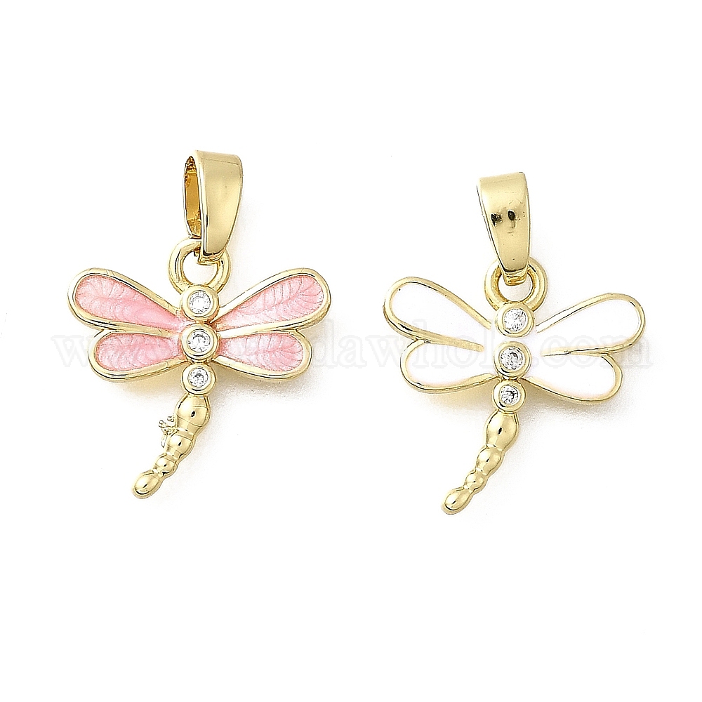 Латунные микро проложить кубического циркония прелести, Эмаль стиле, реальный 18 k позолоченный, стрекоза