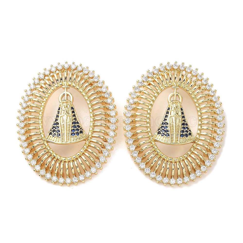 Латунные микро проложить кубического циркония подвески, стойки покрытие, долговечный, без свинца и без кадмия, овал со святым шармом