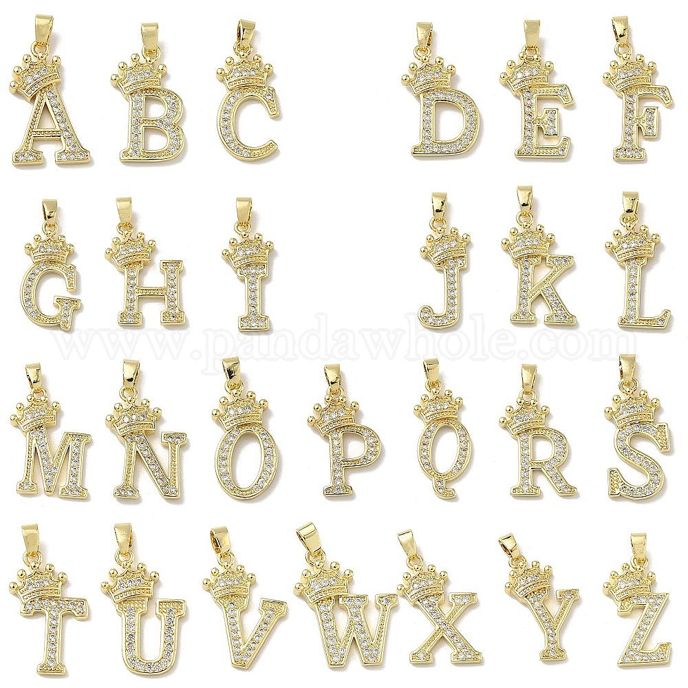 • Letter W Латунные микро проложить кубического циркония подвески, без кадмия и без свинца, реальный 18 k позолоченный, Буква W, 23x19x4 мм, отверстие : 5.5x2.5 мм