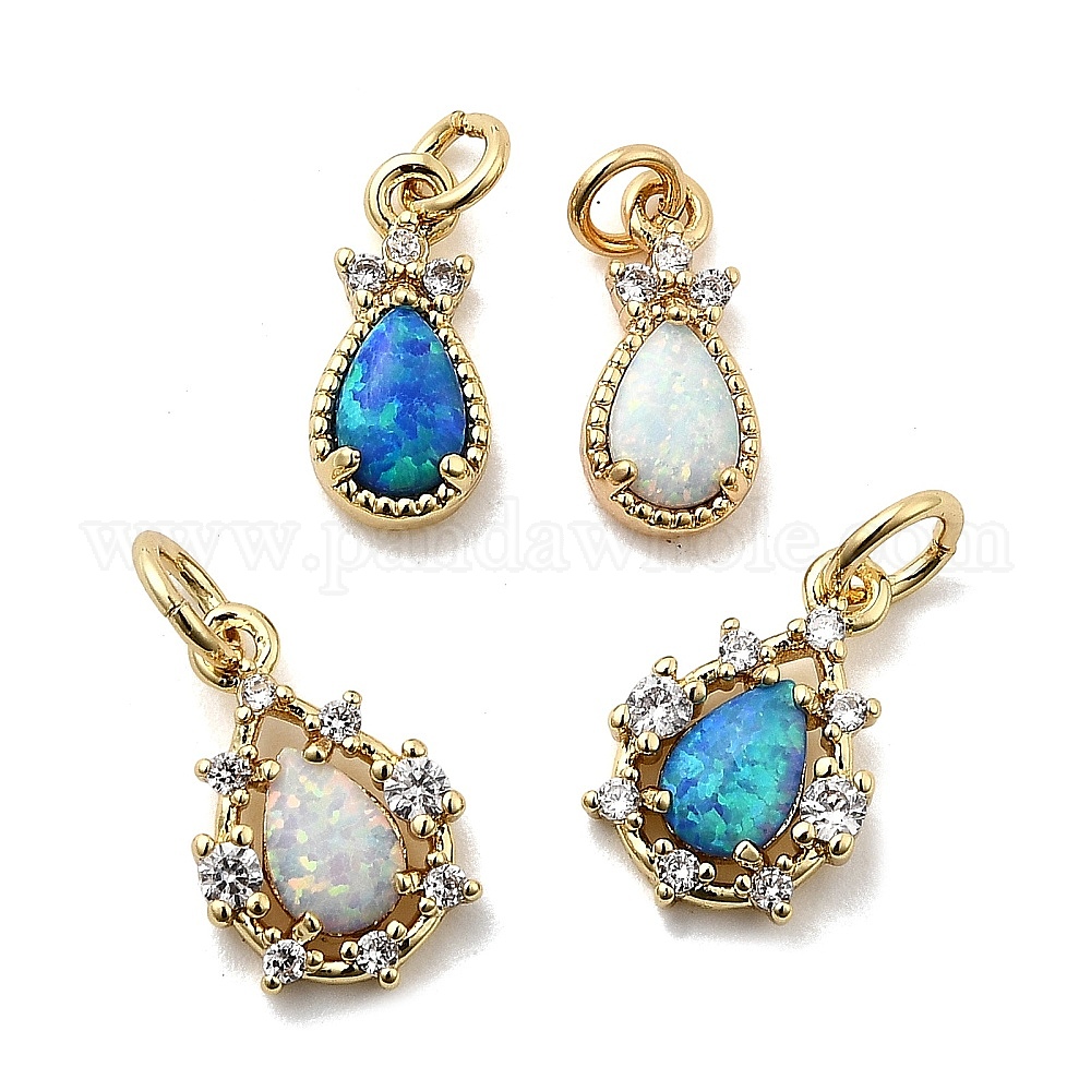 Подвески-слезинки из синтетического опала, с латунными вставками из прозрачных кубических цирконий и соединительными кольцами, реальный 18 k позолоченный, долговечный, стойки покрытие, без свинца и без кадмия