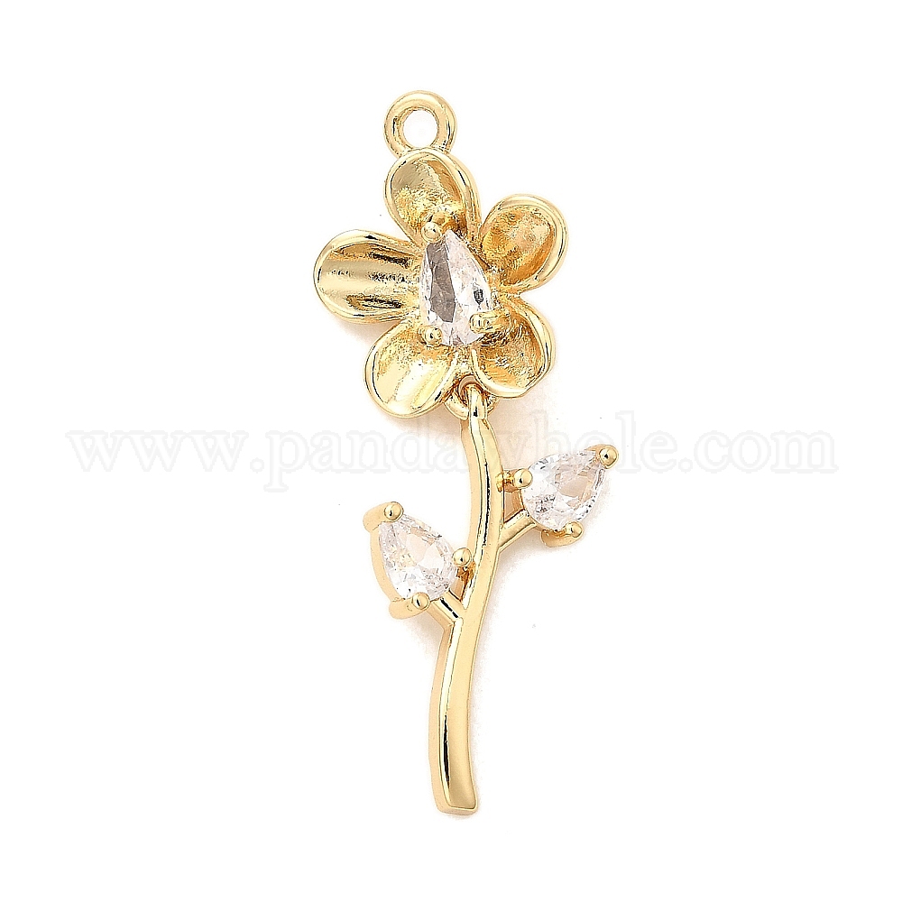 • Настоящее золото 18K Латунные микро проложить кубического циркония подвески, цветок, долговечный, стойки покрытие, без свинца и без кадмия, реальный 18 k позолоченный, 30x11x4 мм, отверстие : 1.4 мм