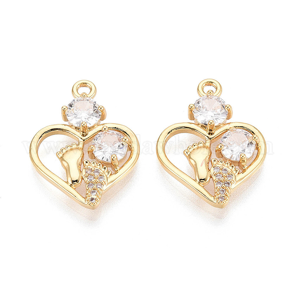 Латунные микропаве прозрачные подвески с фианитом, сердце с ногой, без никеля