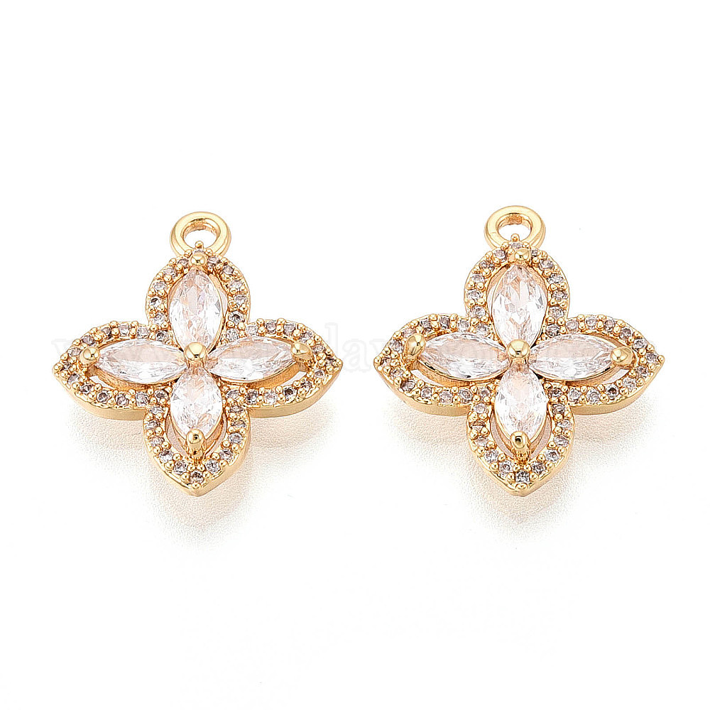 Латунные микропаве прозрачные подвески с фианитом, клевер, без никеля