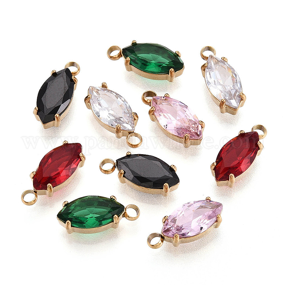 304 подвески из нержавеющей стали и кубического циркония, Очарование лошадиных глаз, вакуумное покрытие pvd, реальный 18 k позолоченный