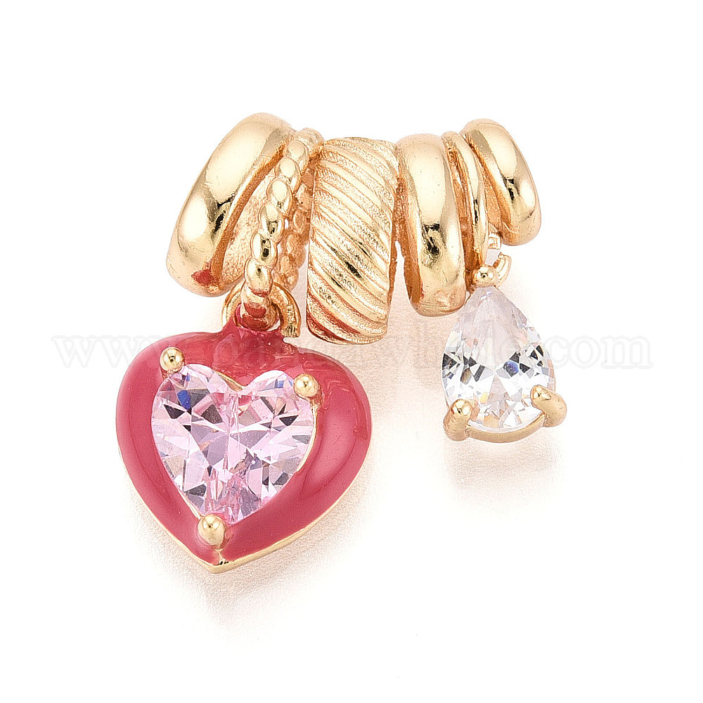 Кулон из циркония, с эмалью, сердце, золотые