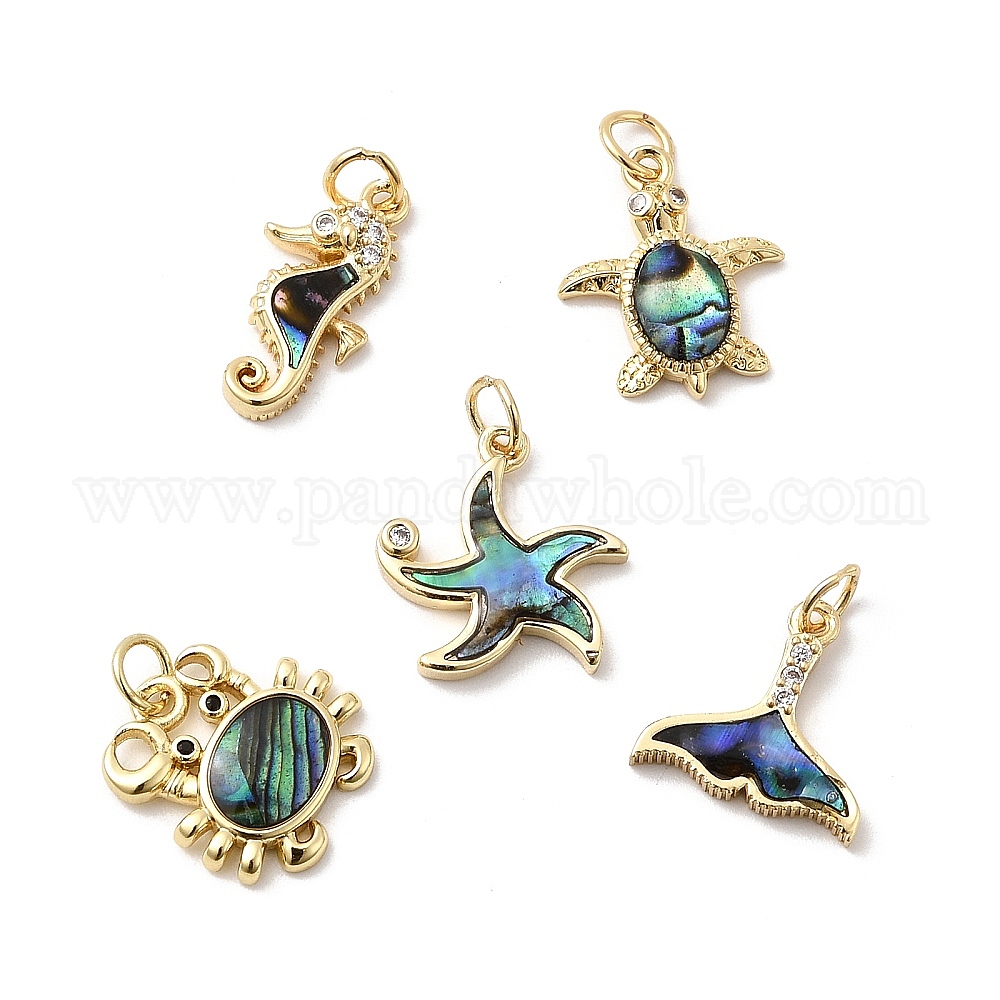 • Краб Латунные микро проложить кубического циркония прелести, с ракушкой пауа и эпоксидной смолой, стойки покрытие, долговечный, без свинца и без кадмия, реальный 18 k позолоченный, краб, 14.5x14x2.5 мм, отверстие : 3 мм