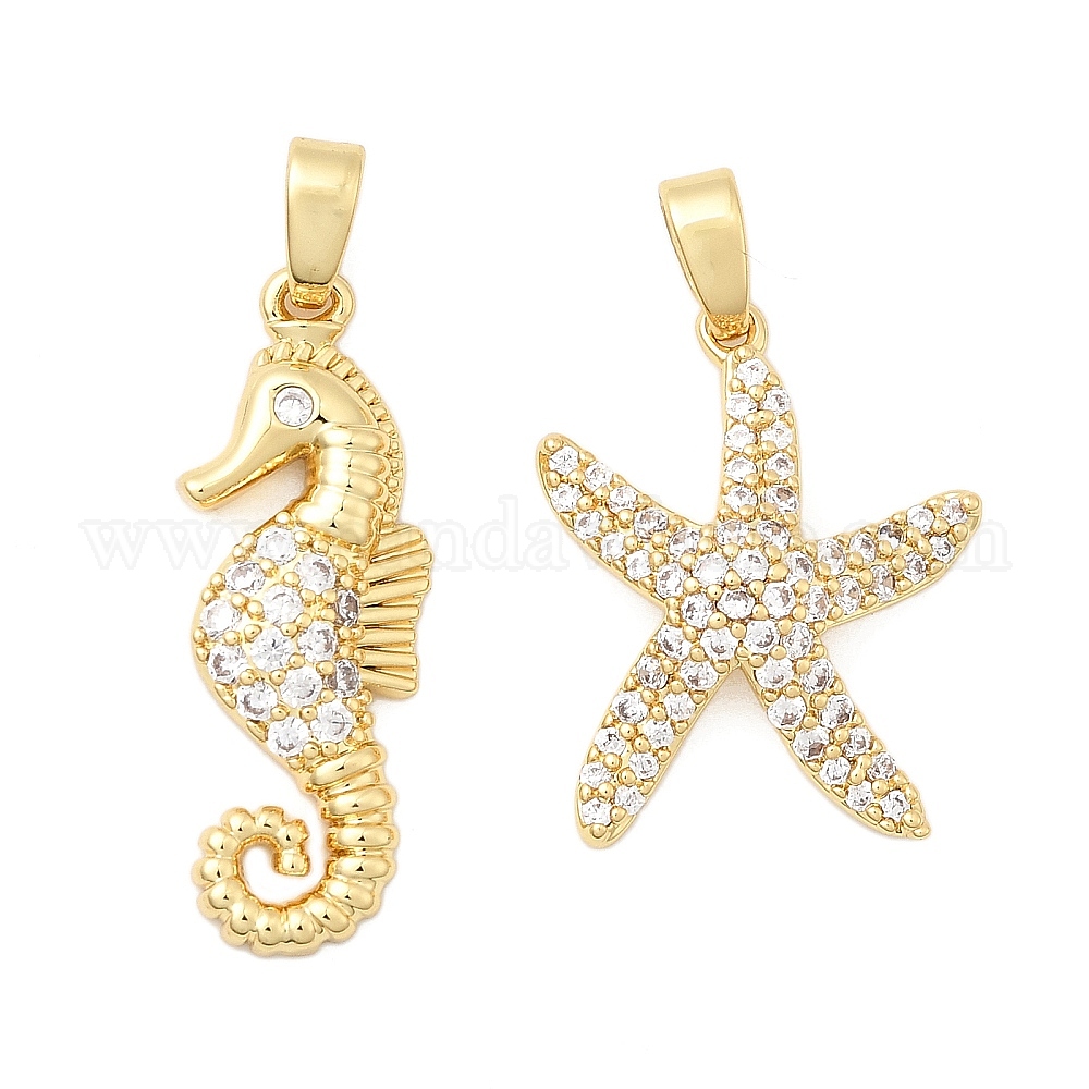 • Морская звезда Латунные микропаве прозрачные подвески с фианитом, реальный 18 k позолоченный, морская звезда, 19x15.5x4 мм, отверстие : 5x2.5 мм