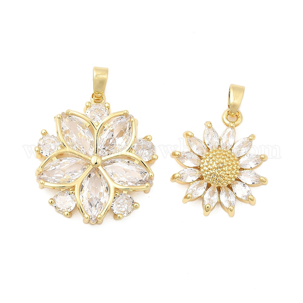 Латунные микропаве прозрачные подвески с фианитом, цветок (037Q4W)