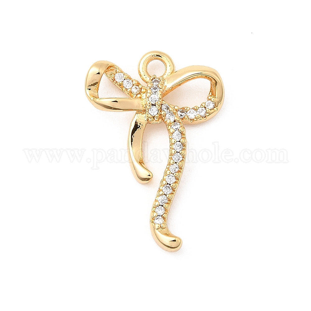 • Настоящее золото 18K Латунные микро проложить кубического циркония подвески, бантом прелести, без никеля , реальный 18 k позолоченный, 21x14x4 мм, отверстие : 1.6 мм