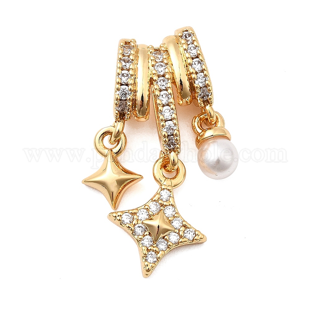 Латунные микро проложить кубического циркония подвески, с abs имитационными жемчужными бусинами , звезда очарование, без никеля