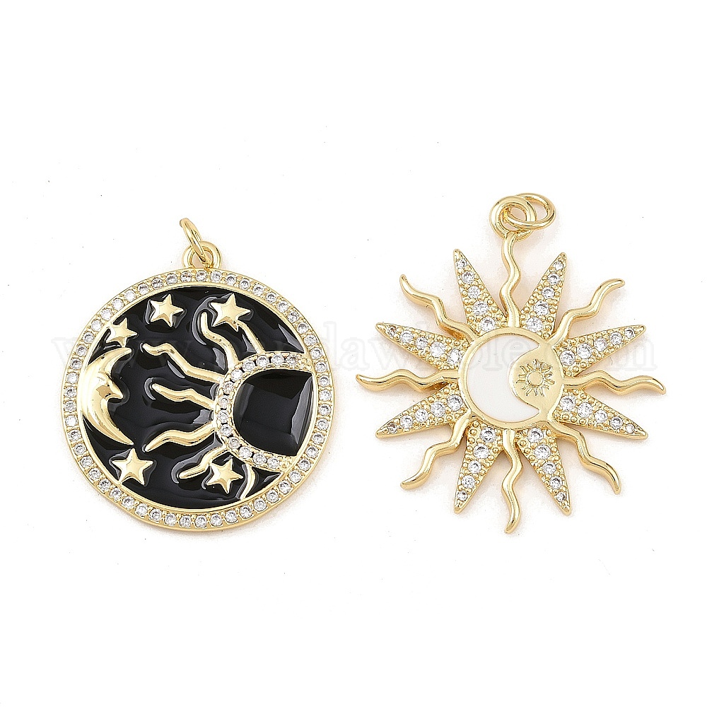 Кулоны с фианитами из латуни, с целью перехода в кольце, талисманы солнца и луны, реальный 18 k позолоченный, без свинца и без кадмия, долговечный, стойки покрытие