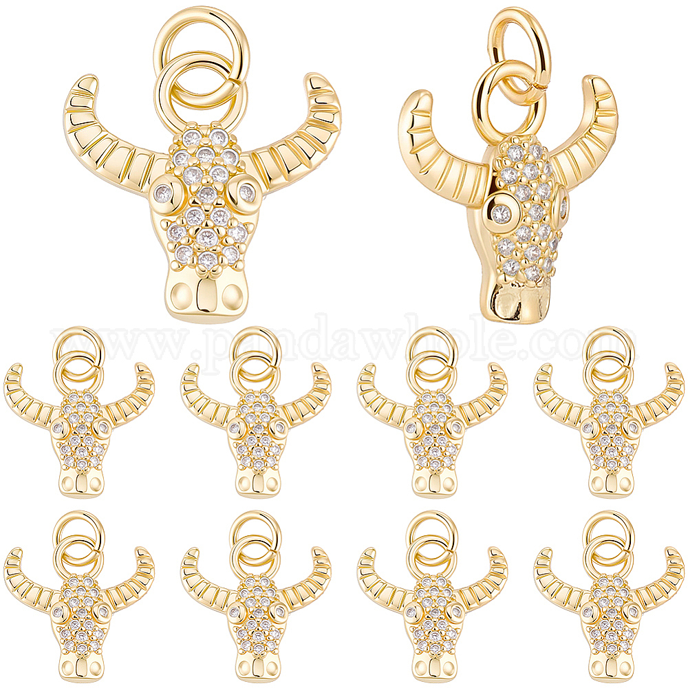 10подвески из латуни с микропаве из кубического циркония, без кадмия и без свинца, Корова головой, реальный 18 k позолоченный, с целью перехода в кольце