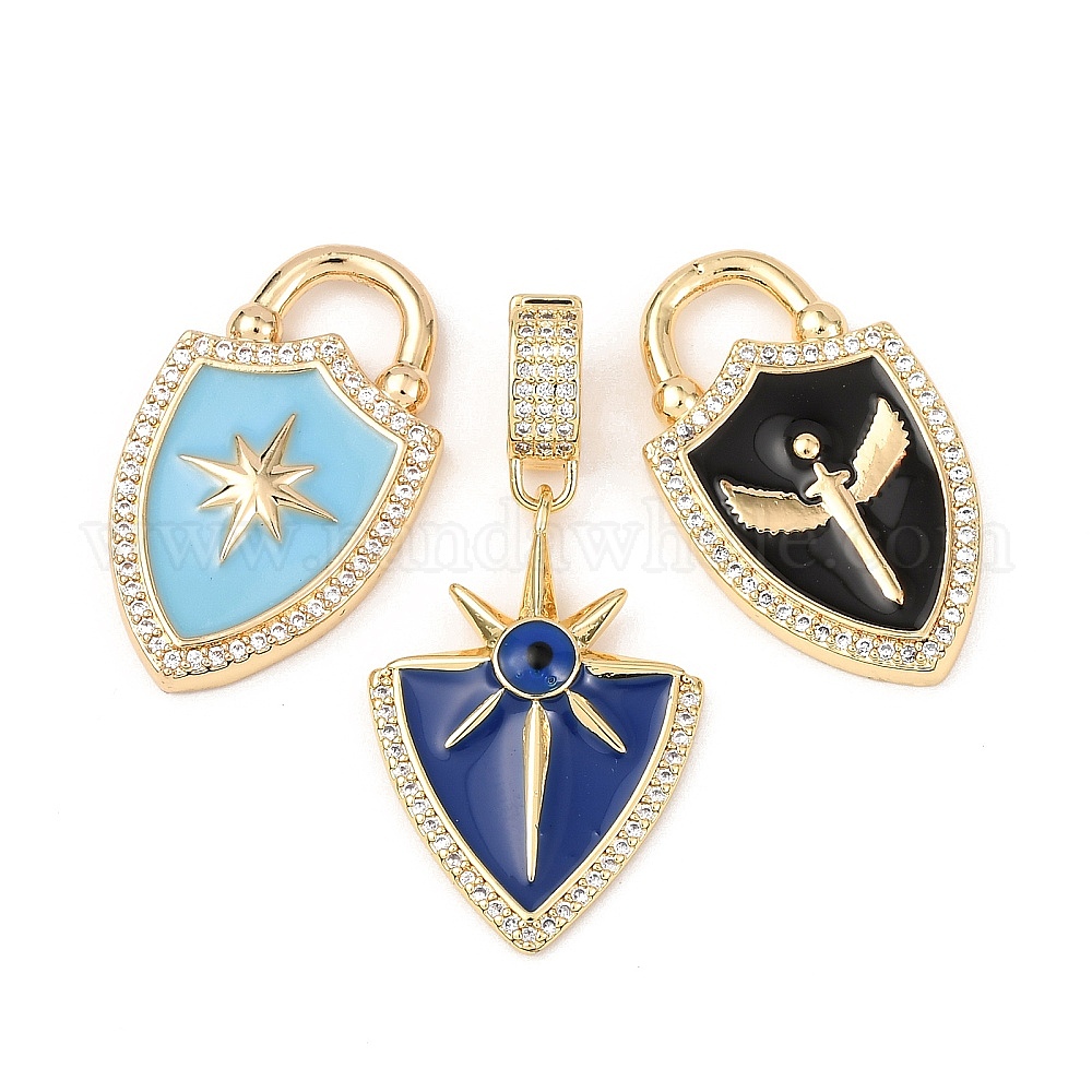 Кулоны с эмалью из латуни с прозрачным кубическим цирконием, щит, золотые
