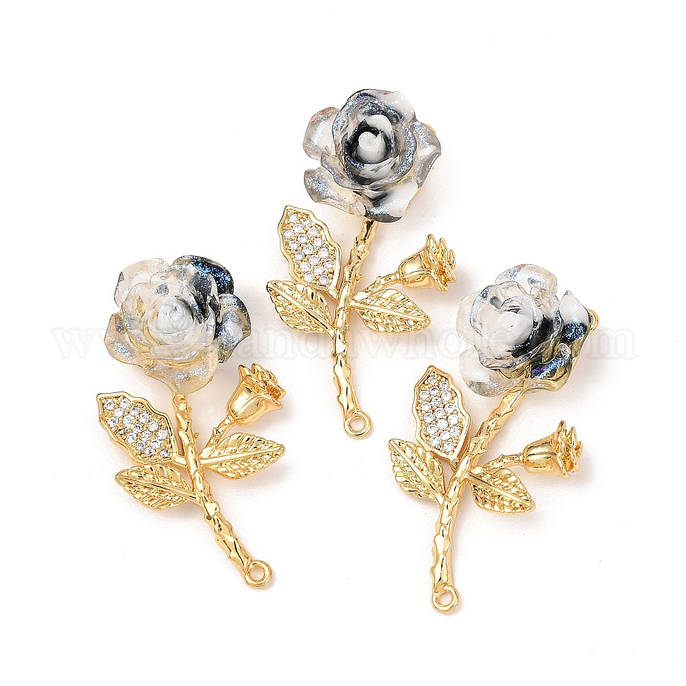 Латунный микропаве прозрачный кубический цирконий с подвесками из смолы, роза, золотые