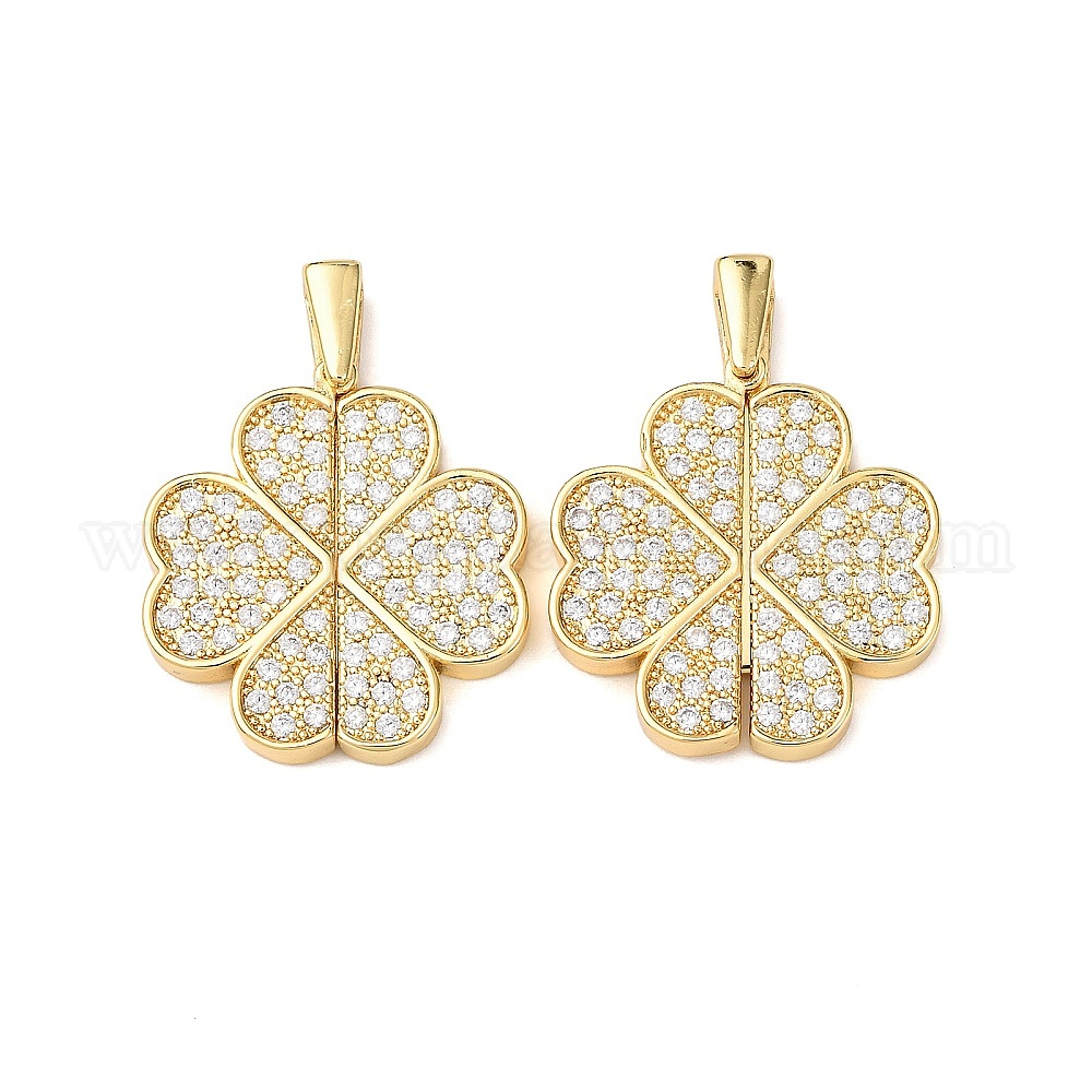 Латунные микропаве кубические цирконии открывающиеся подвески, клевер