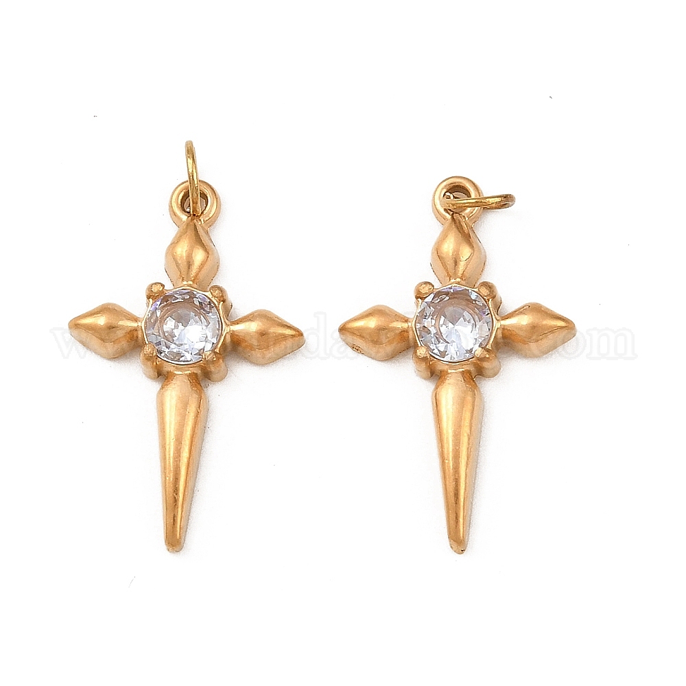• Настоящее золото 18K 304 нержавеющая сталь с подвесками из прозрачного кубического циркония, крест прелести, ионное покрытие (ip), с целью перехода в кольце, реальный 18 k позолоченный, 20.5x12.5x3 мм, отверстие : 3 мм