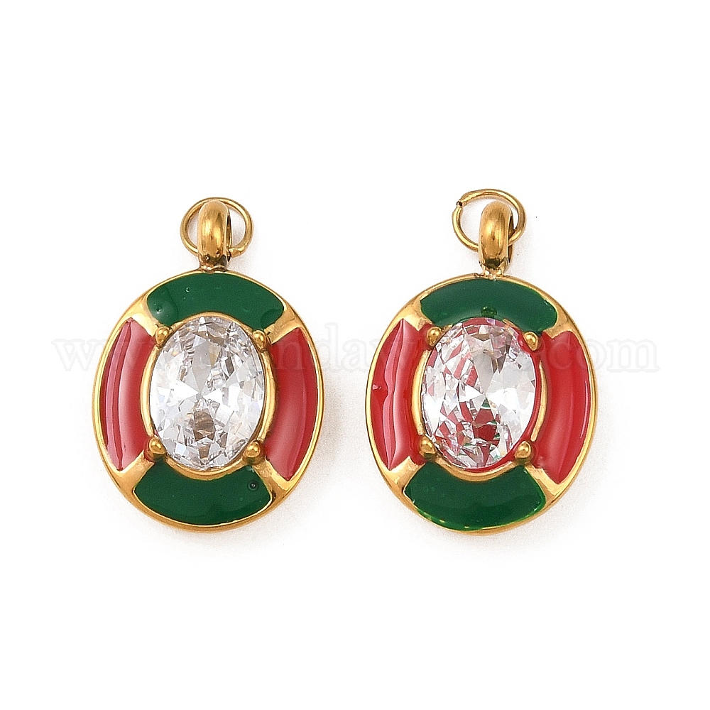 • Настоящее золото 18K 304 подвески из нержавеющей стали с прозрачными кубическими цирконами, покрытые эмалью, овальные амулеты, ионное покрытие (ip), с целью перехода в кольце, реальный 18 k позолоченный, 18x12x5 мм, отверстие : 3 мм