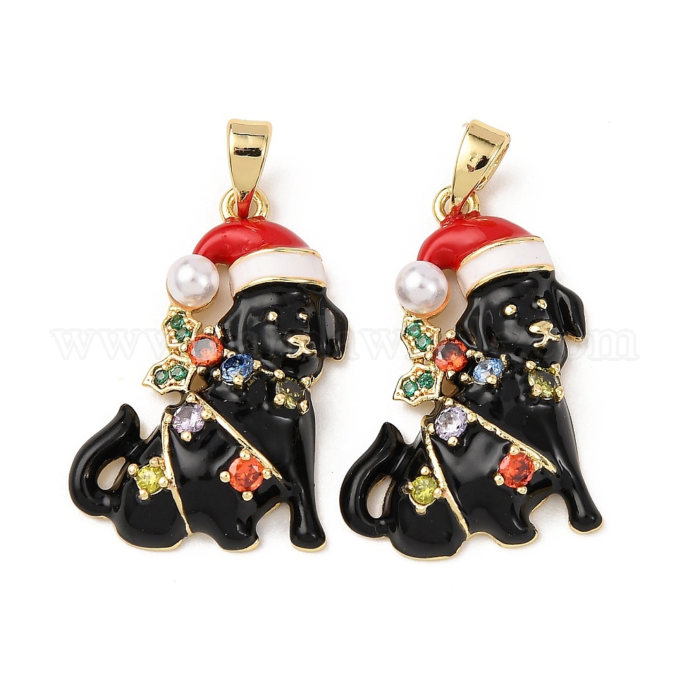 Латунные микро проложить кубического циркония подвески, собака прелести, с эмалевыми и пластиковыми бусинами, имитирующими жемчуг, стойки покрытие, долговечный, без свинца и без кадмия (037WY7)
