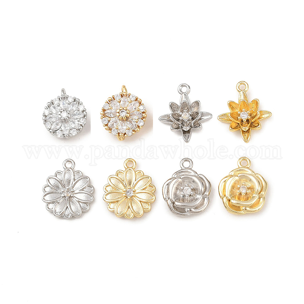 Латунные микропаве прозрачные кубические циркониевые подвески, цветок, долговечный, без кадмия и без свинца, стойки покрытие