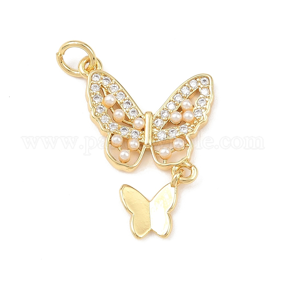 Латунные микро проложить кубического циркония подвески, с абс пластмассовыми жемчужными бисером, бабочки прелести, стойки покрытие, долговечный, без кадмия и без свинца