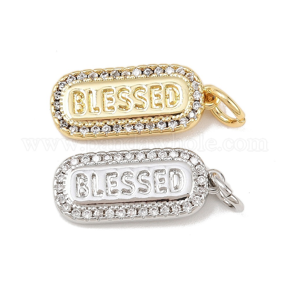 Латунные микро проложить кубического циркония подвески, овал со словом благословил, без кадмия и без свинца, стойки покрытие, долговечный, с целью перехода в кольце