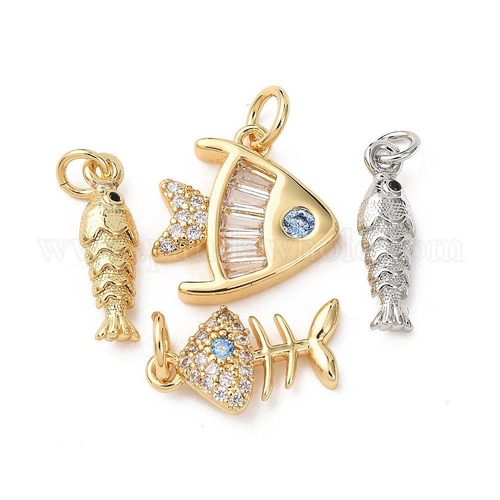Латунные микро проложить кубического циркония подвески, рыбы прелести, без кадмия и без свинца, стойки покрытие, долговечный, с целью перехода в кольце