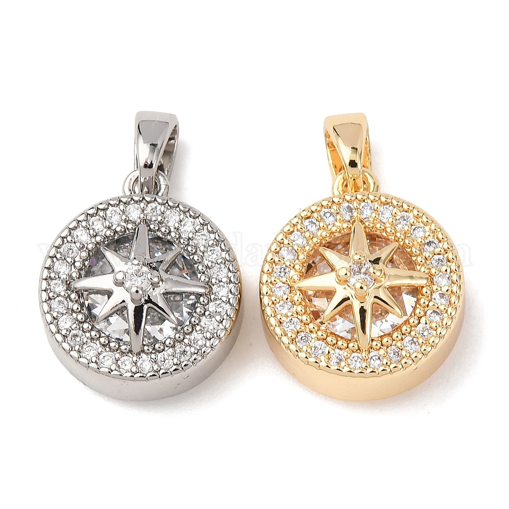 Латунные микро проложить кубического циркония подвески, плоский круглый со звездными подвесками, стойки покрытие, долговечный