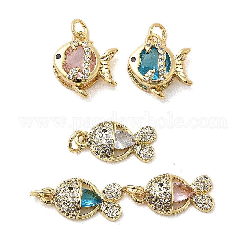 Латунные микро проложить кубического циркония подвески, рыбы прелести, без кадмия и без свинца, стойки покрытие, долговечный, реальный 18 k позолоченный, с целью перехода в кольце