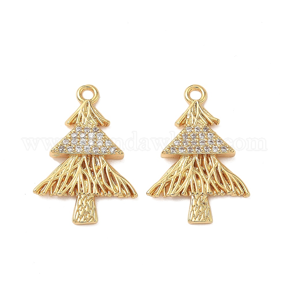 • Настоящее золото 18K Латунные микропаве прозрачные подвески с фианитом, рождественская елка, без никеля , реальный 18 k позолоченный, 21x14.5x2 мм, отверстие : 1.6 мм