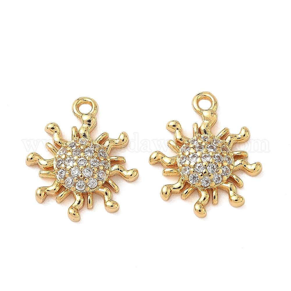 Латунные микропаве прозрачные кубические циркониевые подвески, солнце, без никеля (0382EZ)