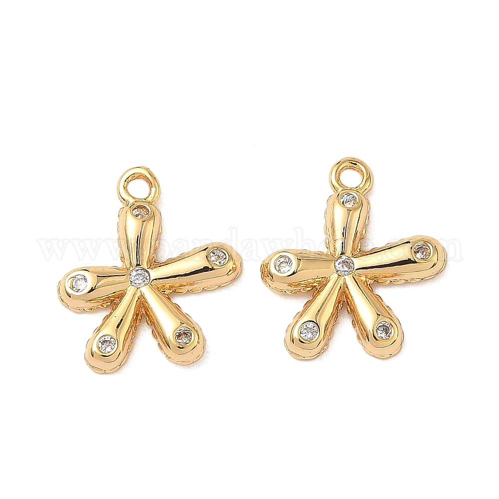 • Настоящее золото 18K Латунные микропаве прозрачные кубические циркониевые подвески, цветок, без никеля , реальный 18 k позолоченный, 13x11.5x2 мм, отверстие : 1.2 мм