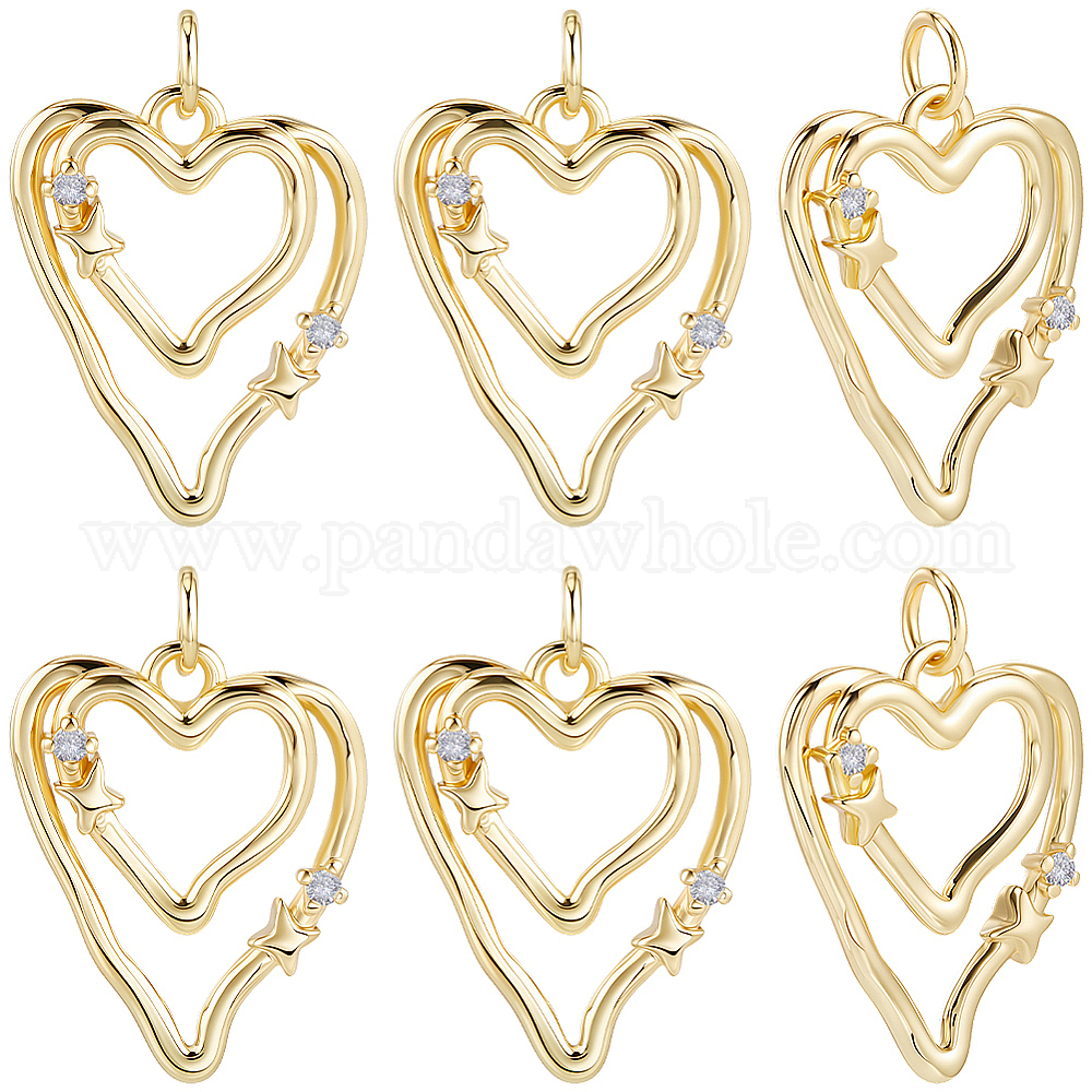 10 кулоны из латуни с прозрачным кубическим цирконием, сердце прелести, долговечный, без кадмия и без свинца, стойки покрытие, с целью перехода в кольце