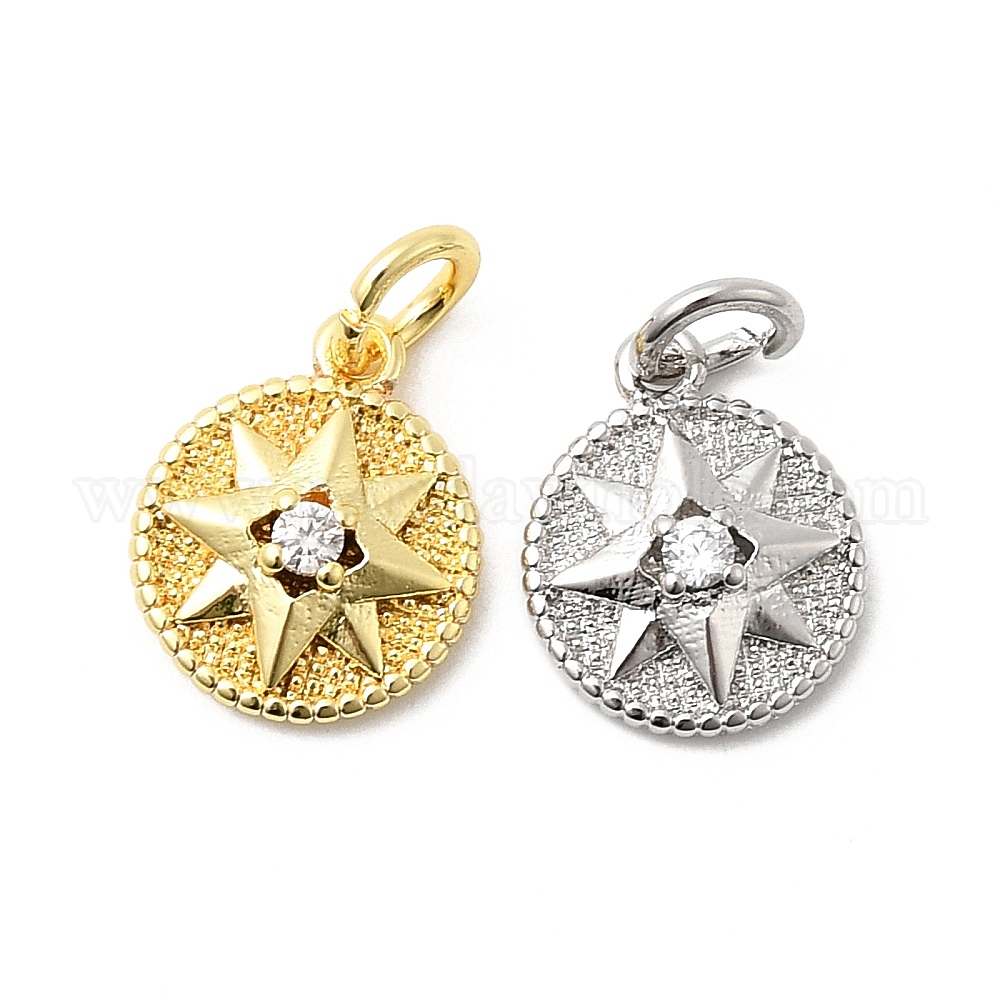 Латунные микро проложить кубического циркония прелести, плоские круглые со звездой, долговечный, стойки покрытие, с целью перехода в кольце