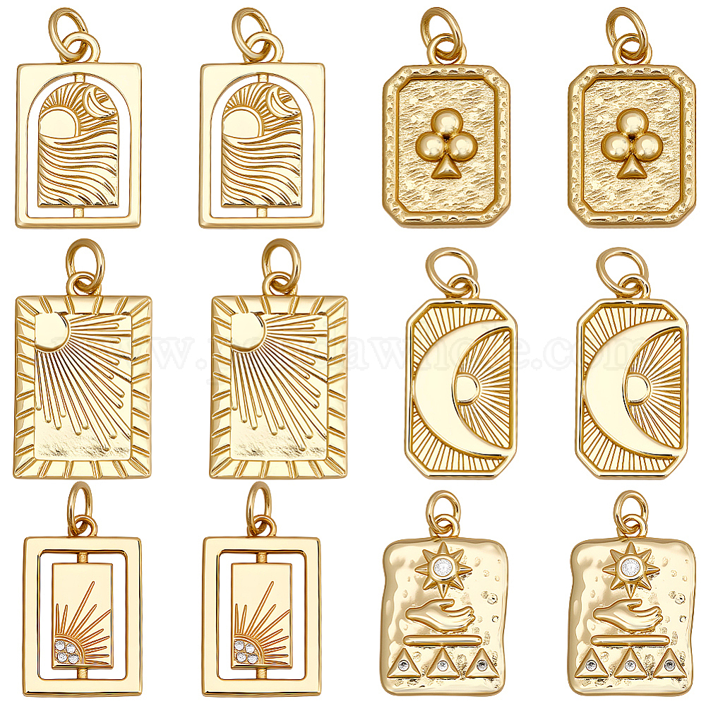 12 шт 6 стили латунные микропаве прозрачные кубические циркониевые подвески, без кадмия и без свинца, долговечный, стойки покрытие, с целью перехода в кольце