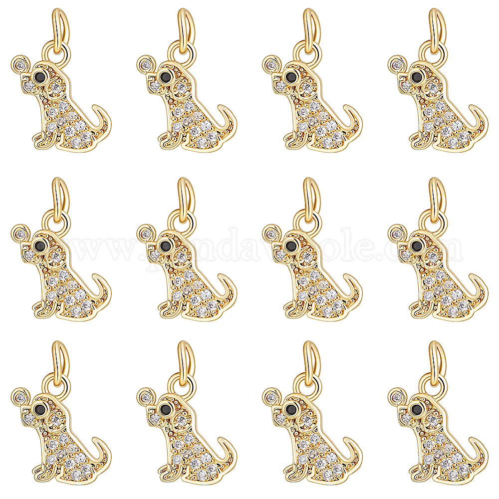 12подвески из латуни с микропаве из кубического циркония, собака прелести, с прыжковых колец