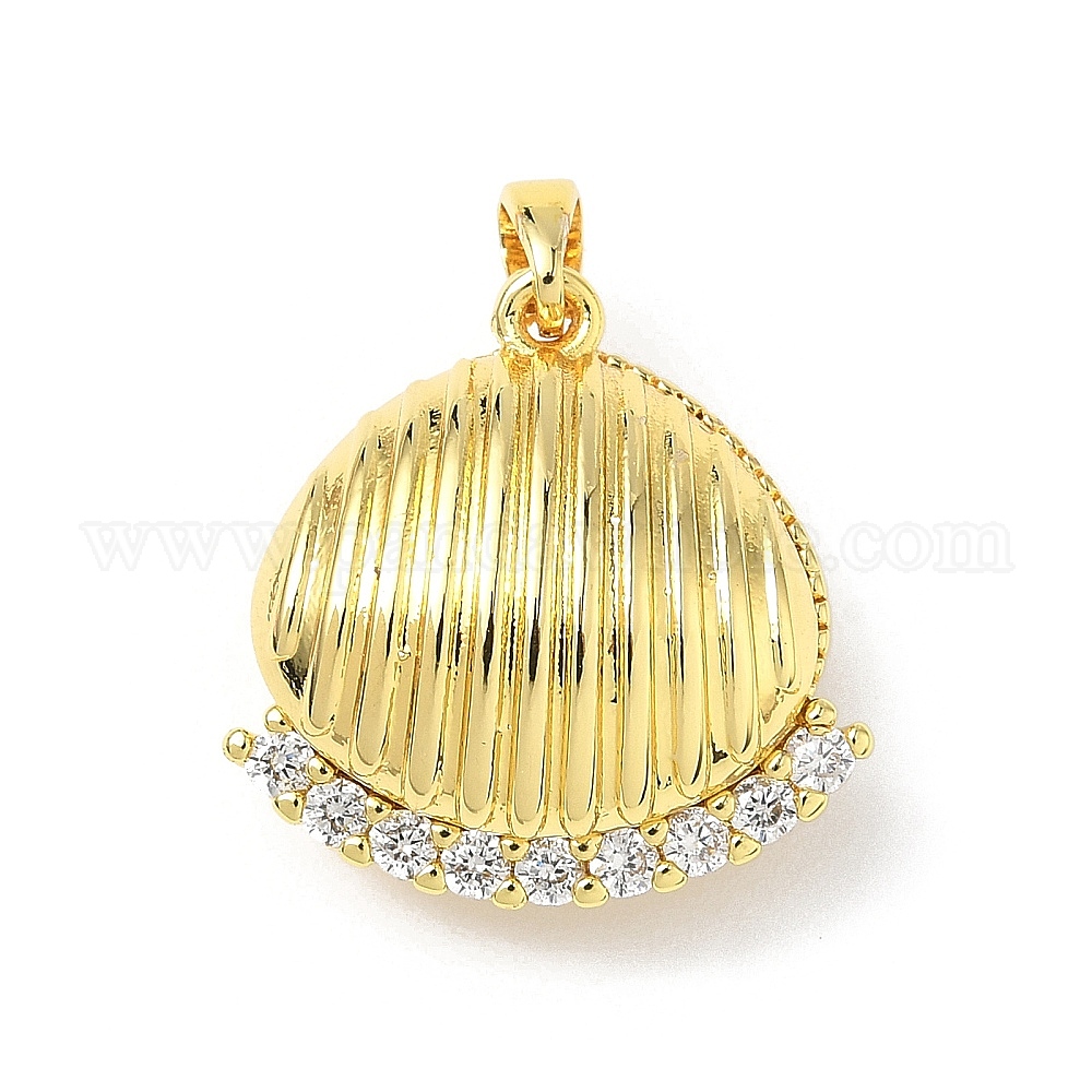Латунные микро проложить кубического циркония подвески, с пластмассовой жемчужиной abs, подвески в форме ракушек, без свинца и без кадмия, долговечный, стойки покрытие